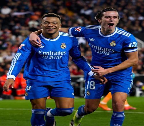 结果是,皇马确实凭这套“残阵”赢了。然而总结下来也只能说是区域性成功。与之前几次在梅斯塔利亚交手的热闹场面不同,当晚除了看台上依然聒噪的球迷,双方基本上在比烂,而主队不幸“胜出”。双方在前45分钟的发挥让解说嘉宾感觉乏味。皇马一开始刻意放松球权,意图抓破绽让姆巴佩跑出单刀。然而瓦伦西亚逼得很紧。身高体壮的巴斯克后卫乌奈·努涅斯在皇马的主要进攻路径上设防。
